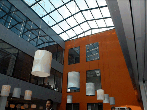 Het gebouw ligt boven de parkeerplaatsen, welke door taluds aan het zicht onttrokken zijn. Een deel van de kantoren zijn aan het transparante en lichte atrium gelegen. De openheid en de betrokkenheid bij het atrium is ook in de inrichting van het gebouw terug te vinden en geeft de organisatie van de gebruiker weer. De mensen van ConQuaestor voelen zich thuis.
