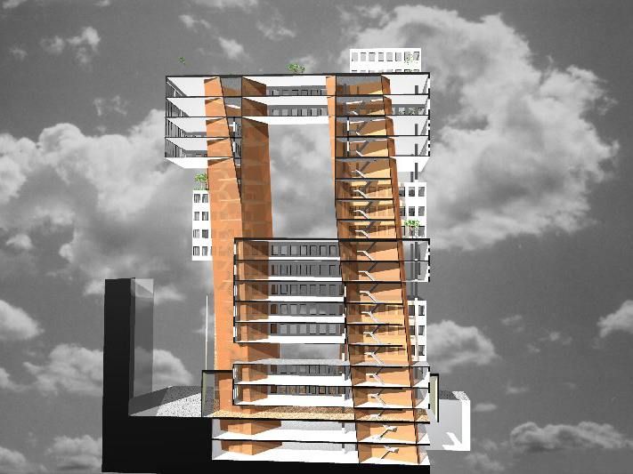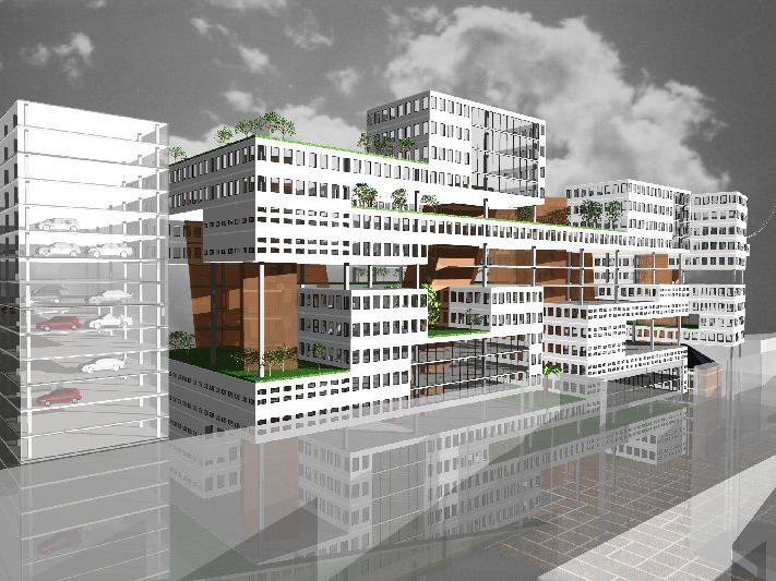 Ten behoeve van een prijsvraag hebben we een concept voor het nieuwe stadskantoor ontwikkeld. Het volume is opgebouwd uit prefab ruimtelijke units die op verschillende wijzen koppelbaar zijn. Hierdoor ontstaat een luchtig en flexibel volume. Het gehele gebouw vouwt zich om een atrium heen dat als centrum fungeert en looproutes in de wijk koppelt.